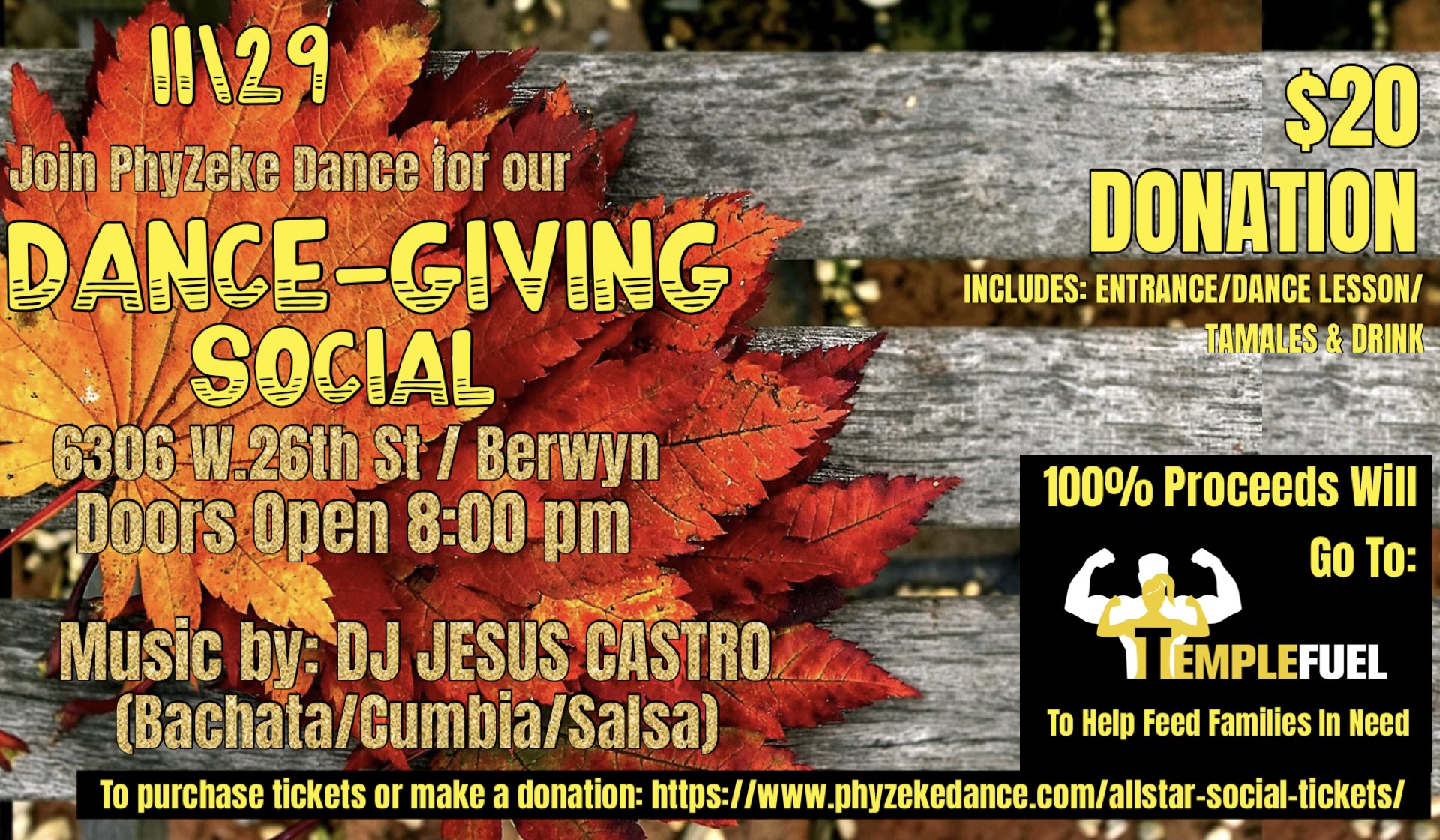 Credit Card & PayPal Dance-Giving Social Tickets $20.00 Dance-Giving Donation (No Social Attendance) $20.00